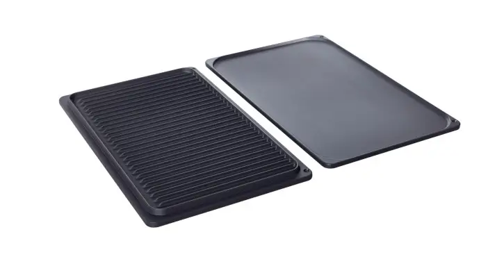 La bandeja grill/plancha Rational permite trabajar carnes, pescados y vegetales con excelente transferencia térmica y resultados consistentes.
